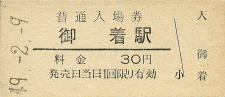 御着 “ごちゃく” 30円 〔山陽本線〕 昭和49年2月9日 |