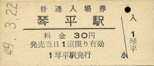 琴平 “ことひら” 30円 〔土讃本線〕 昭和49年3月22日 |