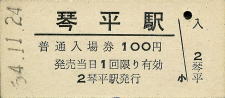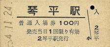 | 琴平 “ことひら” 100円 〔土讃本線〕 昭和54年11月24日 |