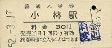 小林 “こばやし” 30円 〔吉都線〕 昭和52年3月17日 |