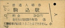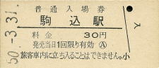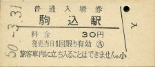 | 駒込 “こまごめ” 30円 〔山手線〕 昭和50年3月31日 |