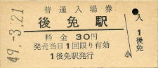 後免 “ごめん” 30円 〔土讃本線〕 昭和49年3月21日 |