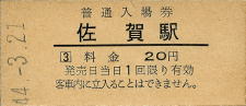 佐賀 “さが” 20円 〔長崎本線〕 昭和44年3月21日 |
