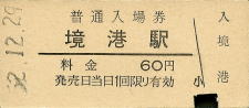| 境港 “さかいみなと” 60円 〔境線〕 昭和52年12月29日 |