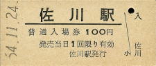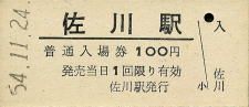 | 佐川 “さかわ” 100円 〔土讃本線〕 昭和54年11月24日 |