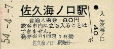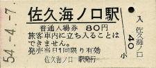 佐津 “さつ” 80円 〔山陰本線〕 昭和54年5月1日 |