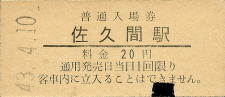 | 佐久間 “さくま” 20円 〔飯田線〕 昭和43年4月10日 |