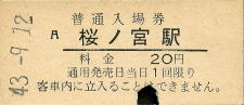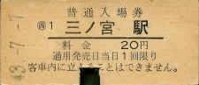 | 三ノ宮 “さんのみや” 20円 〔東海道本線〕 昭和43年7月7日 |