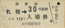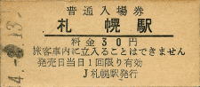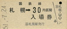 | 札幌 “さっぽろ” 30円 〔函館本線〕 昭和44年8月13日 |