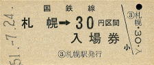 | 札幌 “さっぽろ” 30円 〔函館本線〕 昭和51年7月24日 |