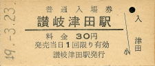 讃岐津田 “さぬきつだ” 30円 〔高徳本線〕 昭和49年3月23日 |