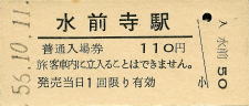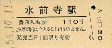 水前寺 “すいぜんじ” 110円 〔豊肥本線〕 昭和55年10月11日 |