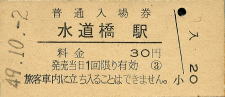 | 水道橋 “すいどうばし” 30円 〔中央本線〕 昭和49年10月2日 |