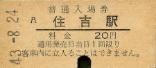 住吉 “すみよし” 20円 〔東海道本線〕 昭和43年8月24日 |