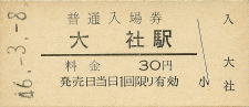 | 大社 “たいしゃ” 30円 〔大社線〕 昭和46年3月8日 |