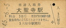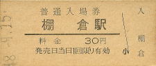 | 棚倉 “たなくら” 30円 〔奈良線〕 昭和48年9月15日 |