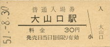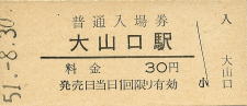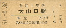 | 大山口 “だいせんぐち” 30円 〔山陰本線〕 昭和45年3月22日 |
