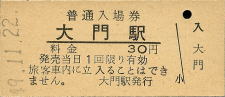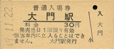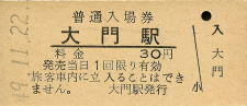 | 大門 “だいもん” 30円 〔山陰本線〕 昭和49年11月22日 |