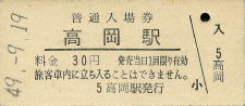 高岡 “たかおか” 30円 〔北陸本線〕 昭和49年9月19日 |