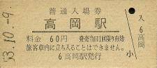 | 高岡 “たかおか” 60円 〔北陸本線〕 昭和53年10月9日 |