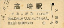 高崎 “たかさき” 100円 〔高崎線〕 昭和54年9月22日 |