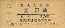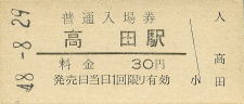 | 高田 “たかだ” 30円 〔和歌山線〕 昭和45年3月12日 |