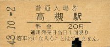 高槻 “たかつき” 20円 〔東海道本線〕 昭和43年10月2日 |