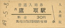 鷹取 “たかとり” 30円 〔山陽本線〕 昭和49年5月8日 |