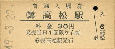 | 高松 “たかまつ” 30円 〔予讃本線〕 昭和49年3月20日 |