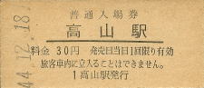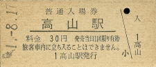 | 高山 “たかやま” 30円 〔高山本線〕 昭和44年12月18日 |