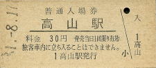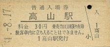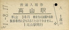 | 高山 “たかやま” 30円 〔高山本線〕 昭和51年8月17日 |