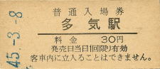 多気 “たき” 30円 〔紀勢本線〕 昭和45年3月8日 |