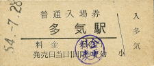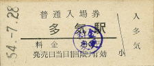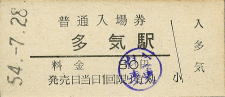 | 多気 “たき” 80円 〔紀勢本線〕 昭和54年7月28日 |