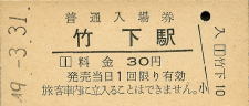 竹下 “たけした” 80円 〔鹿児島本線〕 昭和49年3月31日 |