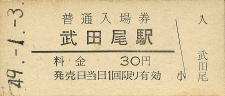 | 武田尾 “たけだお” 30円 〔福知山線〕 昭和49年1月3日 |