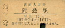武豊 “たけとよ” 20円 〔武豊線〕 昭和43年4月22日 |