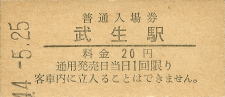 武生 “たけふ” 20円 〔北陸本線〕 昭和44年5月25日 |