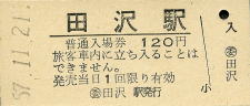 | 田沢 “たざわ” 120円 〔篠ノ井線〕 昭和57年11月21日 |
