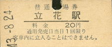 立花 “たちばな” 20円 〔東海道本線〕 昭和43年8月24日 |