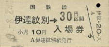 | 伊達紋別 “だてもんべつ” 30円 〔室蘭本線〕 昭和49年8月24日 |