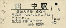 | 田中 “たなか” 80円 〔信越本線〕 昭和54年4月7日 |
