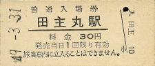 田主丸 “たぬしまる” 80円 〔久大本線〕 昭和49年3月31日 |