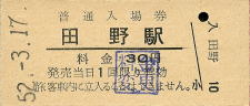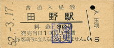 | 田野 “たの” 30円 〔日豊本線〕 昭和52年3月17日 |