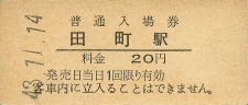 | 田町 “たまち” 20円 〔東海道本線〕 昭和43年11月14日 |