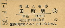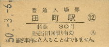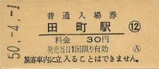 | 田町 “たまち” 30円 〔東海道本線〕 昭和50年4月1日 |