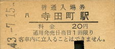 寺田町 “てらだちょう” 20円 〔大阪環状線〕 昭和43年7月15日 |