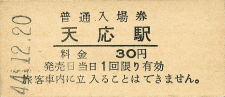 | 天応 “てんのう” 30円 〔呉線〕 昭和44年12月20日 |