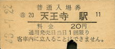 天王寺 “てんのうじ” 20円 〔関西本線〕 昭和43年7月22日 |
