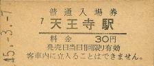 天王寺 “てんのうじ” 30円 〔関西本線〕 昭和45年3月7日 |