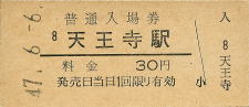 | 天王寺 “てんのうじ” 30円 〔関西本線〕 昭和47年6月6日 |